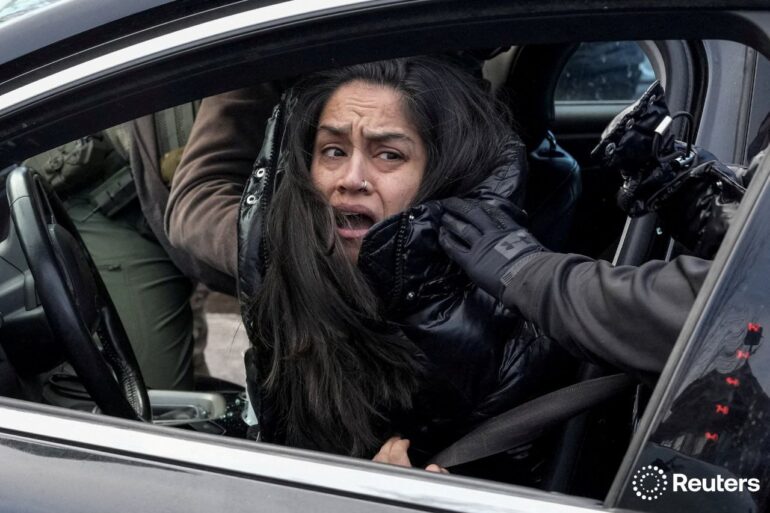 The woman in question was pulled from her seat, her body language a mix of resistance and desperation.