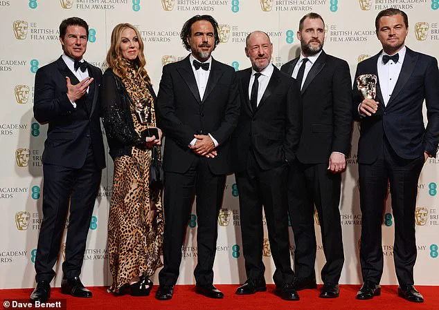 Cruise is seen here posing alongside Mary Parent, Alejandro Gonzalez Inarritu, Steve Golin, Keith Redmon and Leonardo DiCaprio at the BAFTA awards in 2016