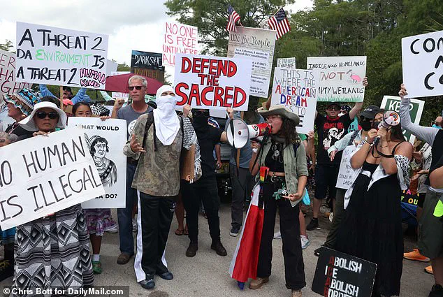 The tour, which included Homeland Security Secretary Kristi Noem and Florida Governor Ron DeSantis, was marred by protests from the Miccosukee Tribe and other activists, who accused the administration of desecrating sacred lands and ignoring the ecological damage of the project.
