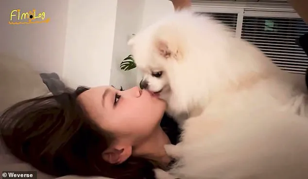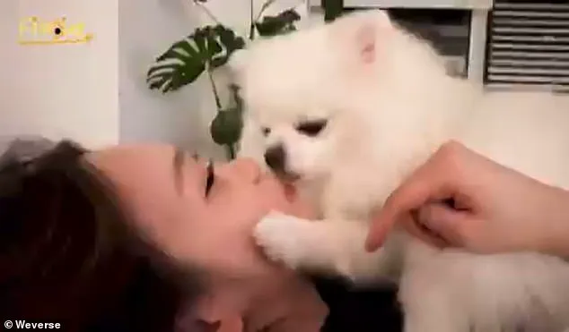 A South Korean pop star has sparked a wave of controversy and concern after sharing videos of her pet pomeranian licking her mouth and lips, raising questions about the intersection of personal behavior, public health, and the role of pets in modern life.