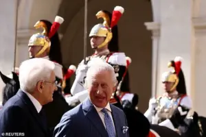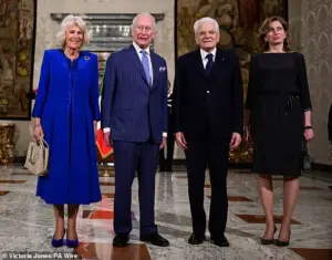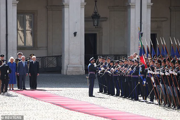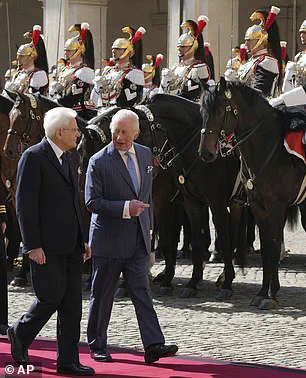 As Charles, 76, and Camilla, 77, stepped out of their vehicle, they were escorted by the mounted Quirinale Guards, a ceremonial unit known for its distinctive uniforms and historical significance.