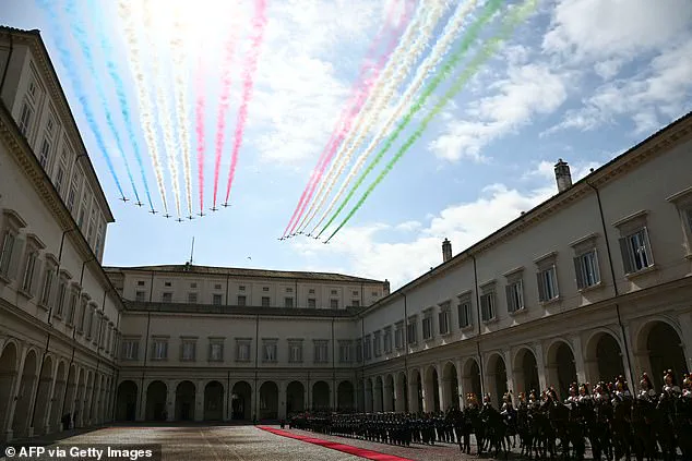 This elaborate ceremony featured a diverse array of military personnel representing various branches of service, from the Quirinale Band to the mounted Corazzieri Guards.