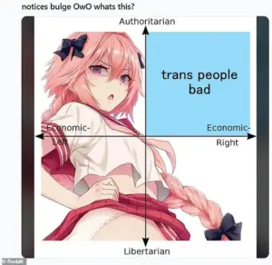 The phrase, which references the ‘OwO’ emoticon (a representation of wide-eyed surprise) and the term ‘bulge’ (a slang term for the male genitalia), was described by officials as a deliberate attempt to provoke and mock specific groups.