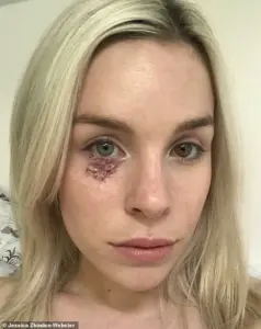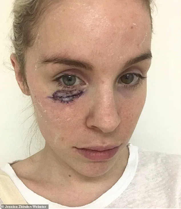 Jessica explained that while the graft is undergoing the healing process, it reddens, raises, contracts, crusts and can distort the surrounding features. ‘If the skin around your eye contracts too much, which it did in my case, it can affect your eye function,’ Jessica said.