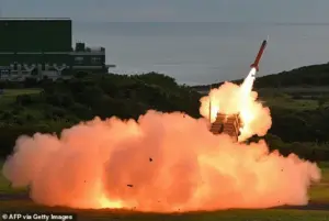 The post comes days after tensions sharply rose in Europe after a Russian drone was shot down in Polish airspace. Pictured: US-made MIM-104 Patriot surface-to-air missile is launched during a live fire exercise