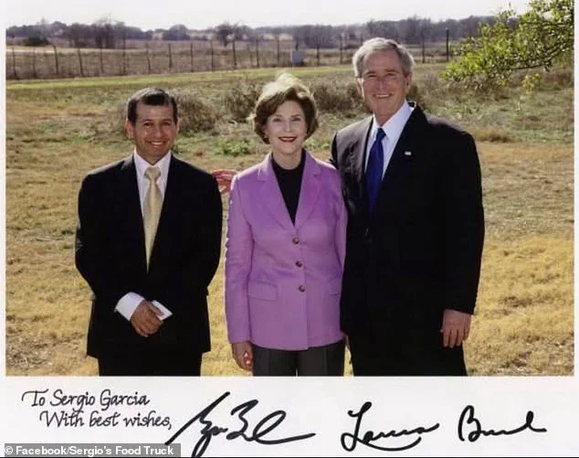 Garcia made a name for himself after catering events at George W Bush’s Western White House in the early 2000s. He is seen with the former president and first lady Laura Bush