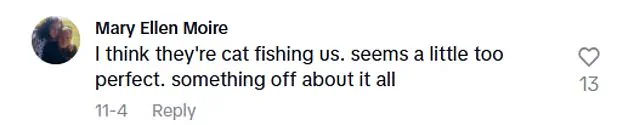 A third user bluntly suggested, ‘I think they’re catfishing us.