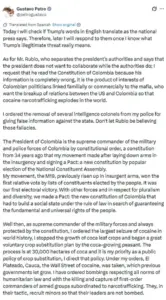 His government has reported record levels of cocaine seizures, a claim he used to challenge Trump’s narrative that Colombia is a major source of narcotics for the U.S.