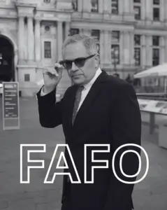 The post, which accompanied a stark black-and-white photograph of Krasner with the acronym ‘FAFO’ (an apparent nod to the slang) written beneath it, was sent in the wake of escalating tensions between local law enforcement and federal agencies.