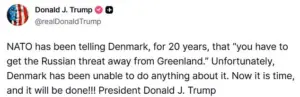 The controversy over Greenland has intensified, with Trump vowing to push for U.S. sovereignty over the Danish territory, despite Denmark’s status as a NATO member.