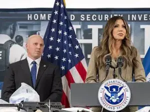 His presence at the press conference, where he embraced Noem, has since become a focal point for critics who argue that his dual role as both a religious leader and an ICE official is deeply problematic.