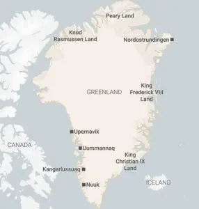 A map of Greenland showing its capital Nuuk