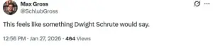 One commenter quipped, ‘This feels like something Dwight Schrute would say,’ referencing the character’s often exaggerated and controversial traits.