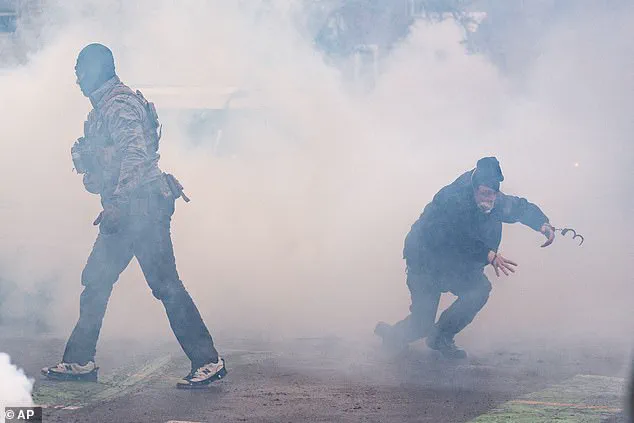 A chaotic scene unfolded as a man arrested by federal agents escaped in handcuffs after tear gas was deployed during a protest.
