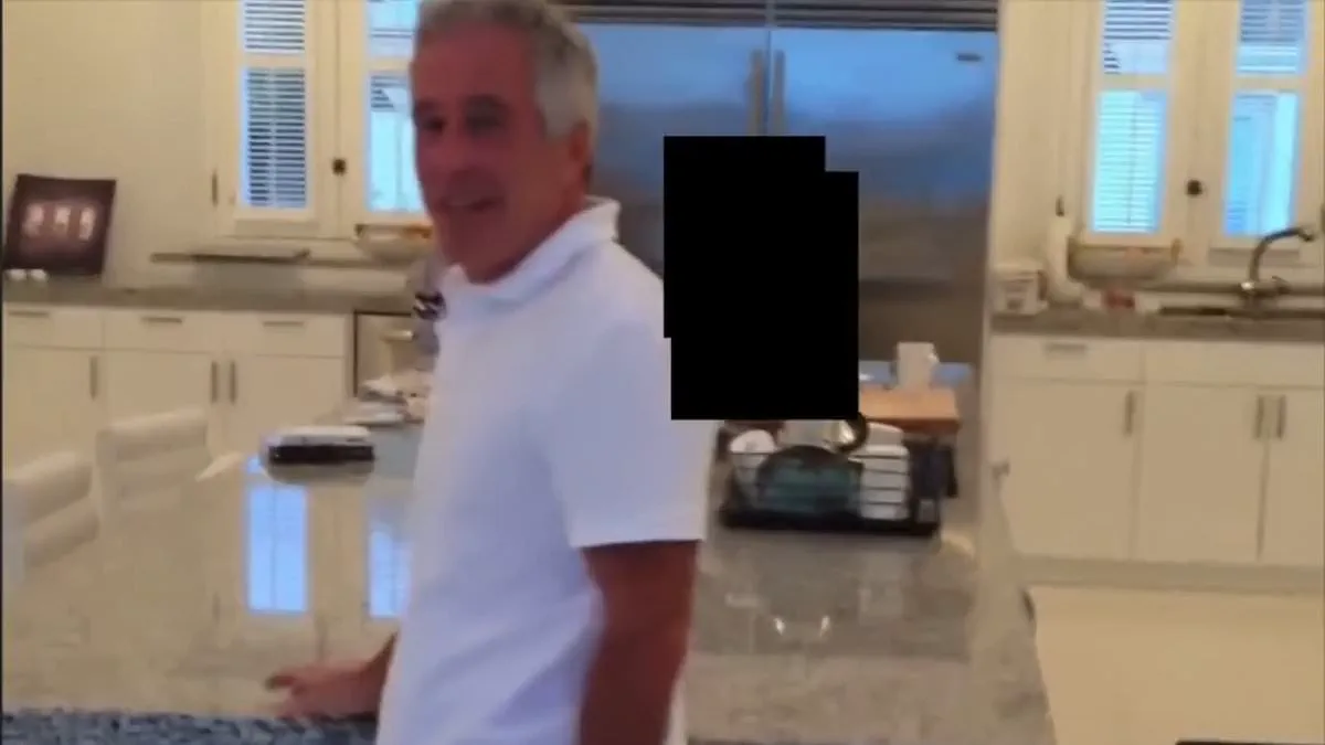 A chilling video has surfaced, capturing Jeffrey Epstein in the act of chasing two young women through the kitchen of his home on Little Saint James, the private Caribbean island infamous for its ties to his abuse scandal. The footage, released alongside a flood of newly unsealed documents, shows Epstein laughing as he pursues the women, who are seen screaming and attempting to evade him. Their faces are blurred to protect their identities, but the scene is graphic in its depiction of Epstein's alleged predatory behavior. He is seen wearing a white polo shirt, joggers, and slippers, his demeanor one of calculated amusement as he jumps onto a kitchen counter and lunges toward one of the women. The video's origin remains unclear, but its release has intensified scrutiny of Epstein's past and the networks that enabled his crimes.