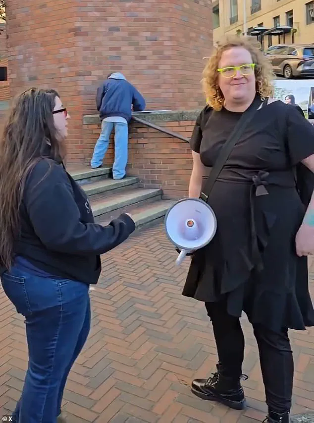 In the video, they asserted, 'I have the first amendment right to freedom of assembly, sweetheart,' as the attendee persisted in their plea for the activist to 'listen to their experience.' The activist’s repeated claims that Trump was a 'Nazi' drew particular ire, with one protestor questioning whether the activist was 'misinformed' about the president’s actions.