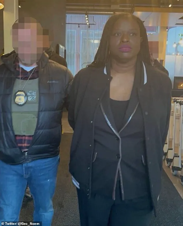 The Department of Homeland Security (DHS) boss shared a photograph of the activist looking downcast as she was escorted into custody wearing handcuffs. 'Religious freedom is the bedrock of the United States - there is no first amendment right to obstruct someone from practicing their religion,' Noem wrote.