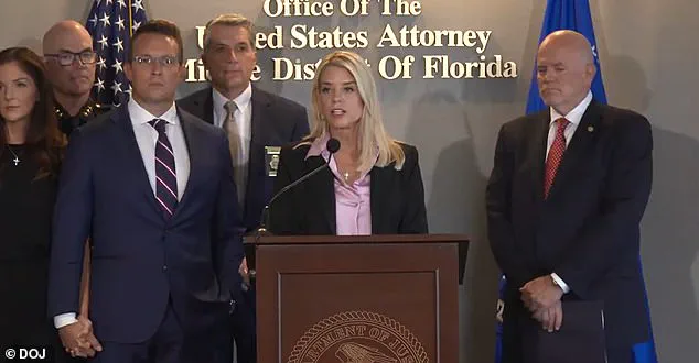 Pam Bondi, the Attorney General of Florida, delivered a fiery press conference on Friday, accusing a suspect named George Isbell Jr. of orchestrating a plot linked to 'Antifa' to threaten conservative influencer Benny Johnson.