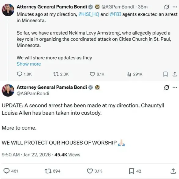 Two Protesters Arrested in Storming of Minnesota Church Where ICE Agent Serves as Pastor, Attorney General Announces14 hours ago